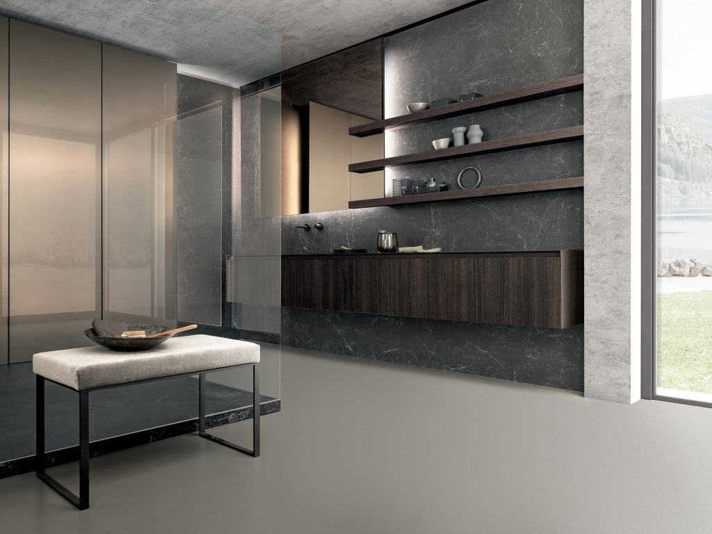 Materia, acqua, silenzio. Un ambiente essenziale dove il gesto quotidiano incontra proporzione e calma.