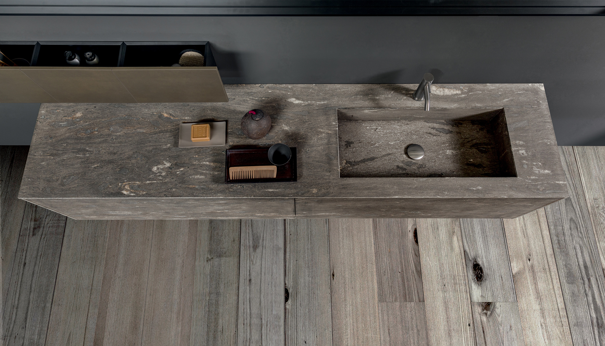 Blade Lab interpreta la pietra come materia progettuale attraverso dettagli tecnologici e formali esclusivi, in cui funzione ed estetica definiscono l’identità del progetto. Grazie a lavorazioni evolute, Modulnova trasforma la pietra in una superficie perfettamente integrata all’uso quotidiano. L’anta viene scavata e alleggerita, preservando stabilità, resistenza e purezza del volume.