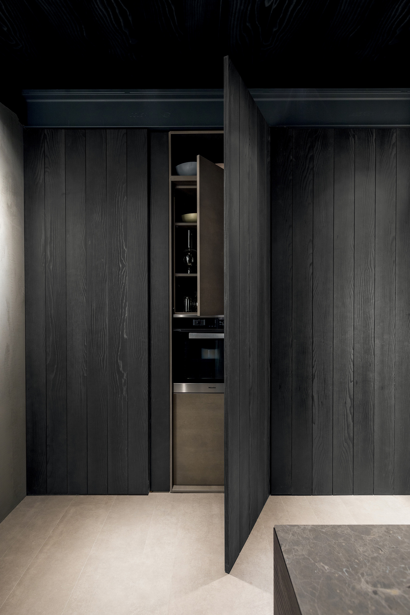 Le finiture dialogano tra loro in un equilibrio calibrato di tonalità calde e profonde, definendo un ambiente sofisticato e contemporaneo.