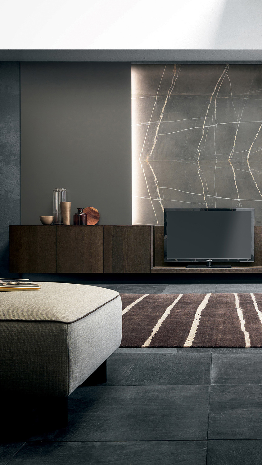 Ogni dettaglio è progettato per offrire funzionalità evoluta senza compromettere l’armonia visiva, dando vita a un living che dialoga in perfetta continuità con l’ambiente circostante