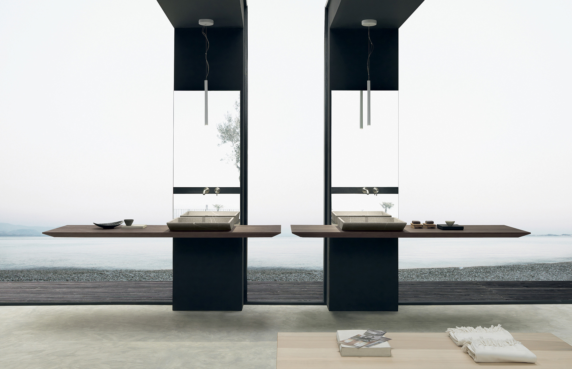 Sospeso su un elegante telaio in ferro nero e abbinato a un lavabo in pietra piasentina, Surf esprime carattere e unicità. L’equilibrio tra estetica e funzionalità rende questo programma ideale per chi desidera un bagno dal design essenziale ma distintivo, capace di valorizzare ogni spazio.