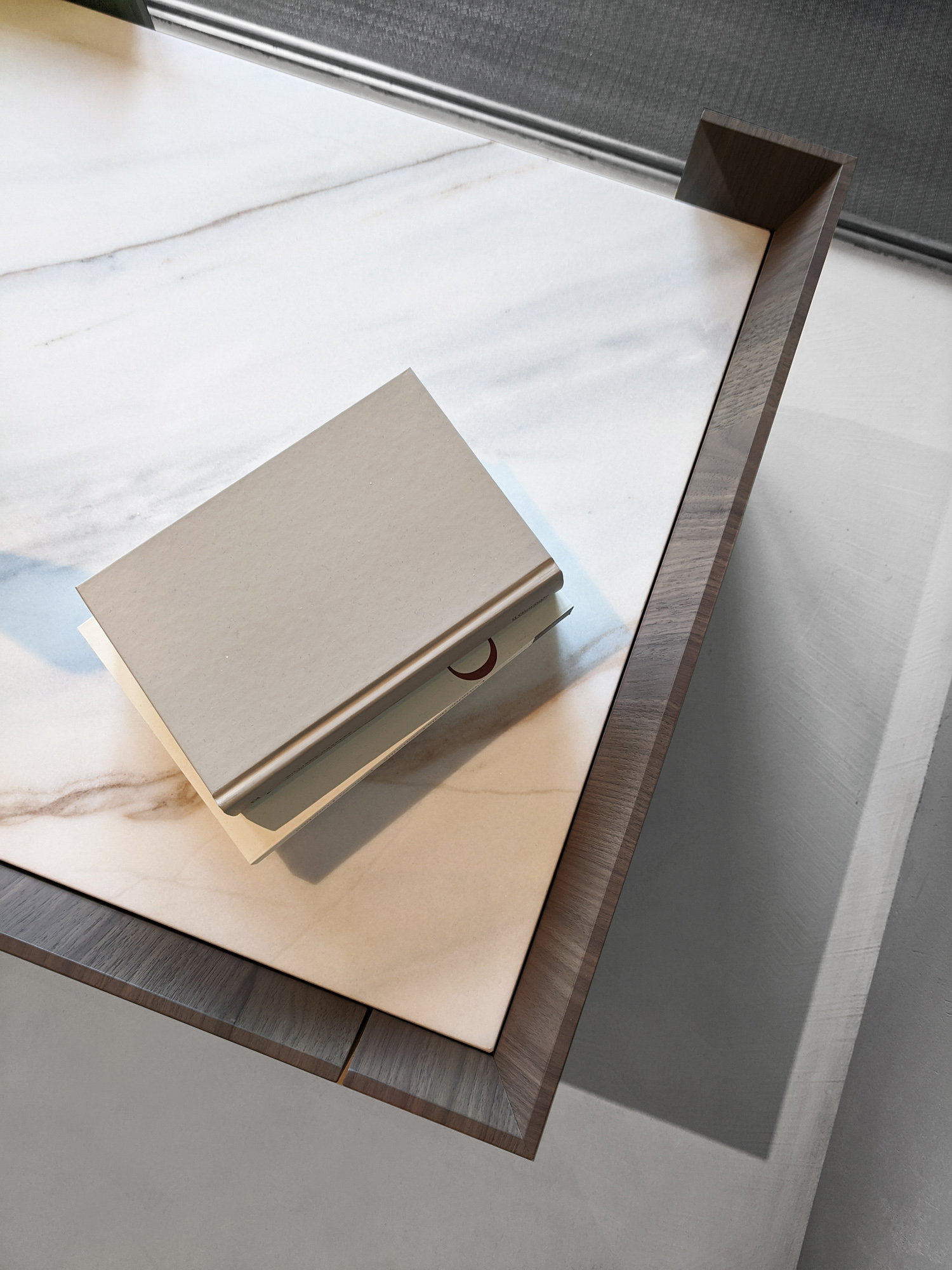 Il pensiero della materia si traduce in un volume monolitico, sintesi scultorea e preziosa di proporzione, dettaglio e identità.