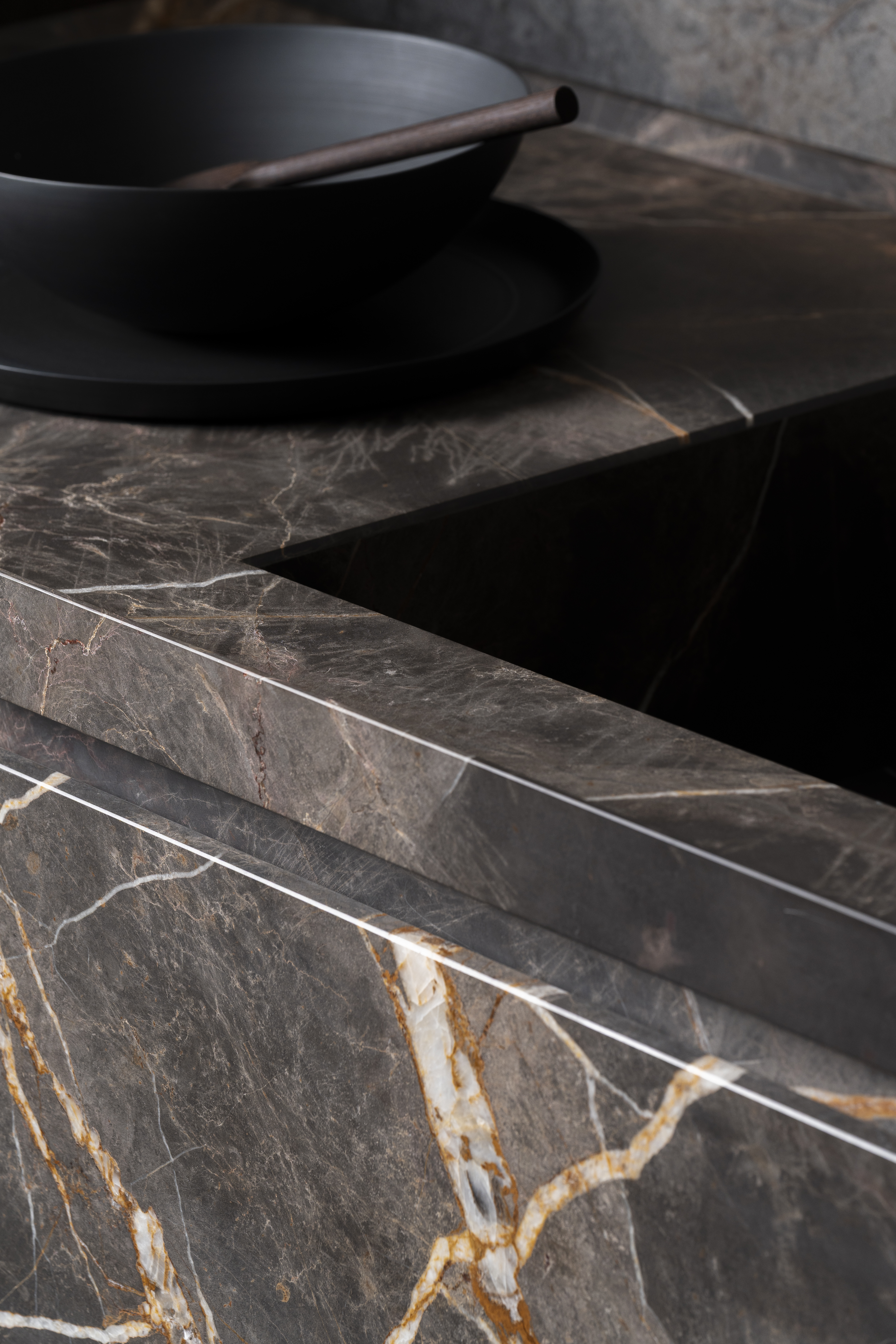 Il grès, materiale tradizionalmente impiegato nell’edilizia, è stato introdotto per la prima volta nel mondo della cucina da Modulnova nel 2006, per poi estendersi agli ambienti living e bagno. L’azienda ha sviluppato un sistema costruttivo brevettato che ha consentito di raggiungere risultati di eccellenza estetica, elevando al contempo le performance del materiale, il quale, sottoposto a rigorosi test, assicura una durabilità e una resistenza superiori.