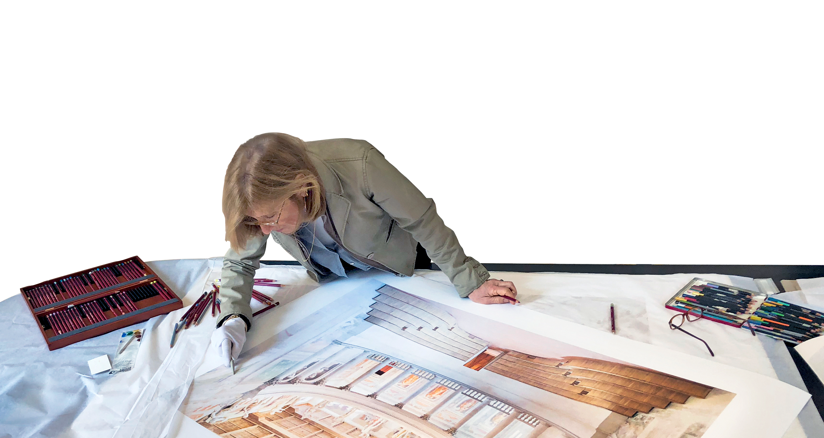 Quei luoghi diventano una sua proiezione idealizzata delle architetture che hanno segnato la storia italiana e ne rappresentano la tradizione artigianale ed estetica.” Patrizia Mussa