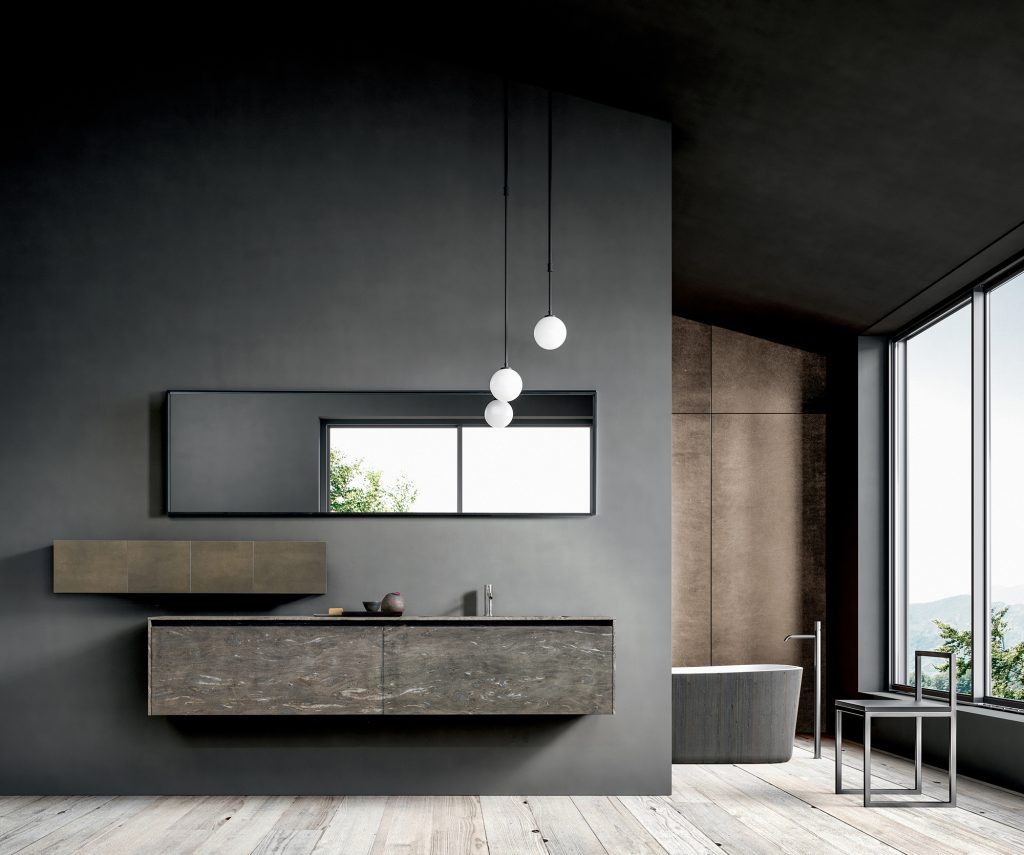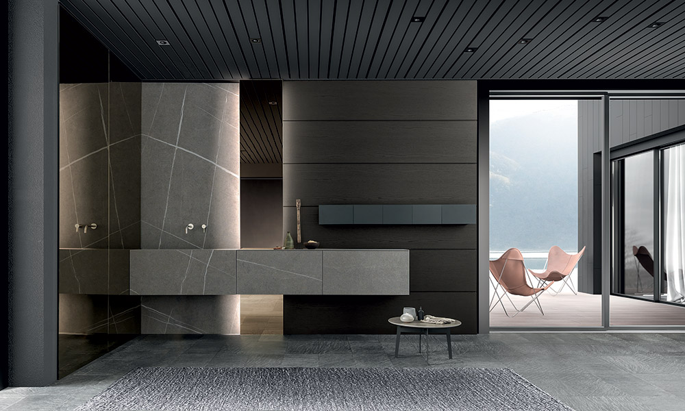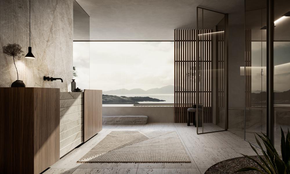 Materia, acqua, silenzio. Un ambiente essenziale dove il gesto quotidiano incontra proporzione e calma.