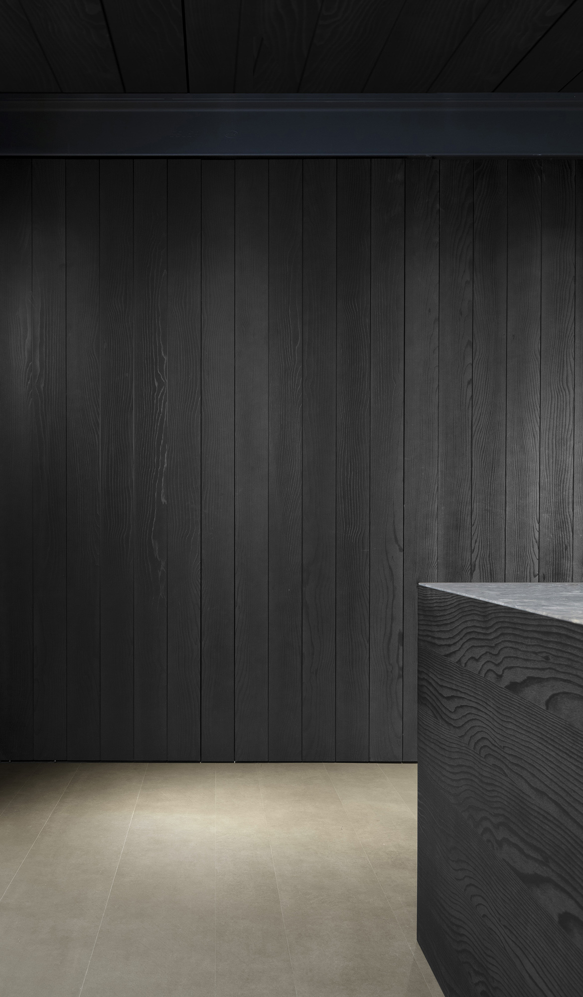 Il progetto si sviluppa attorno a una visione monolitica dello spazio, dove la continuità delle superfici esalta la purezza del volume.