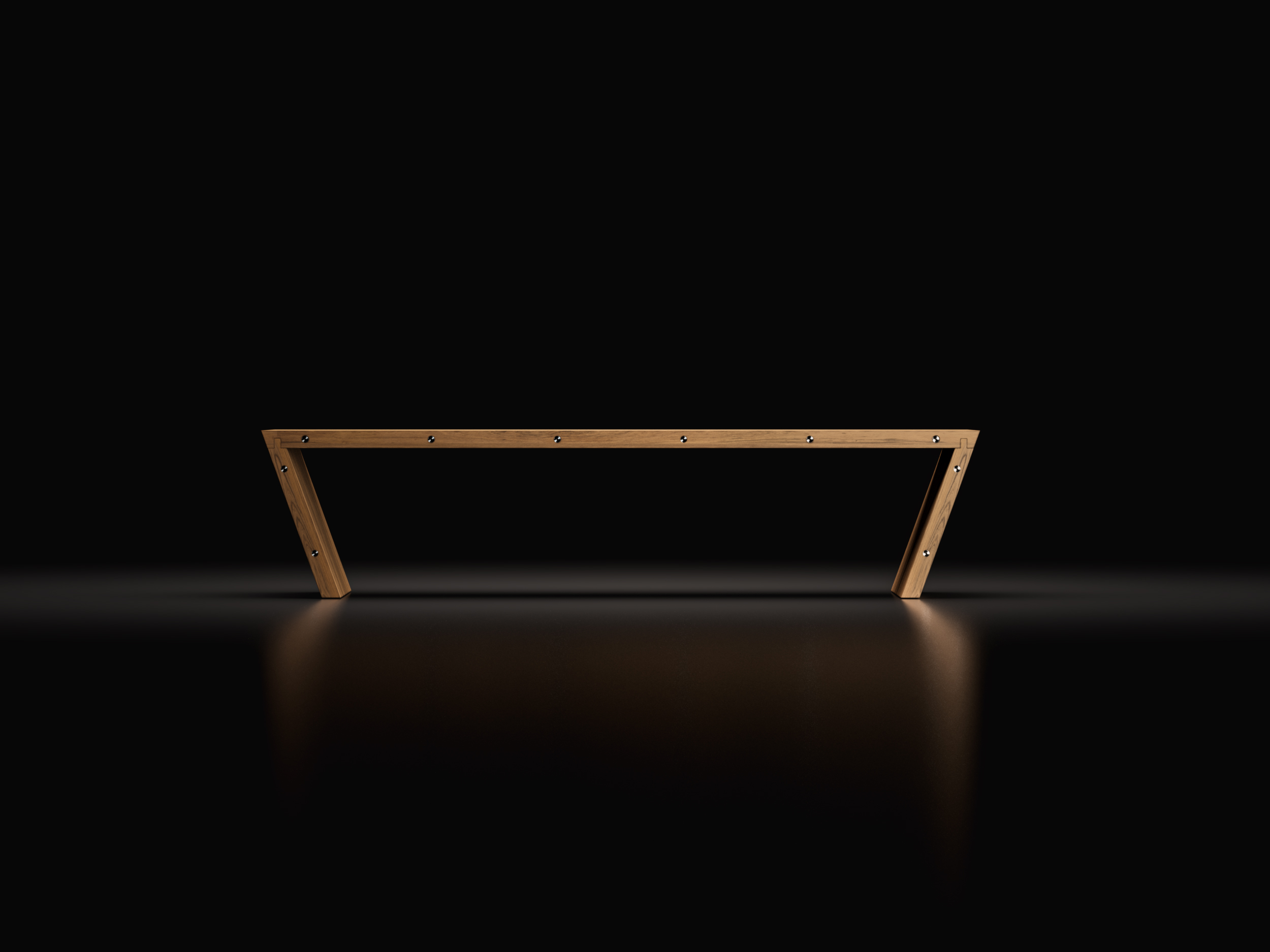 Il frassino massello lavorato a listelli ne costruisce la struttura e la presenza visiva, nelle versioni Light e Dark.