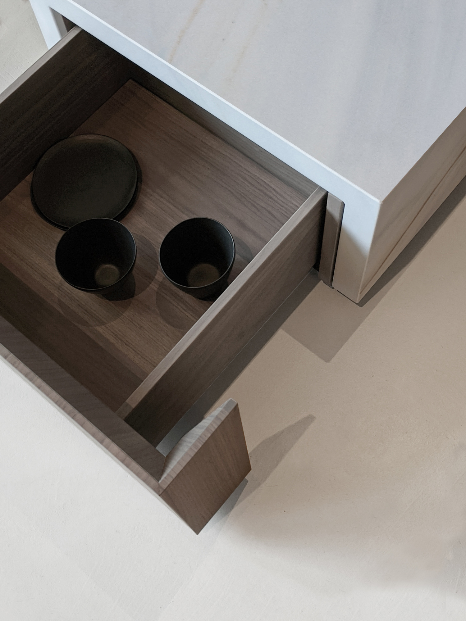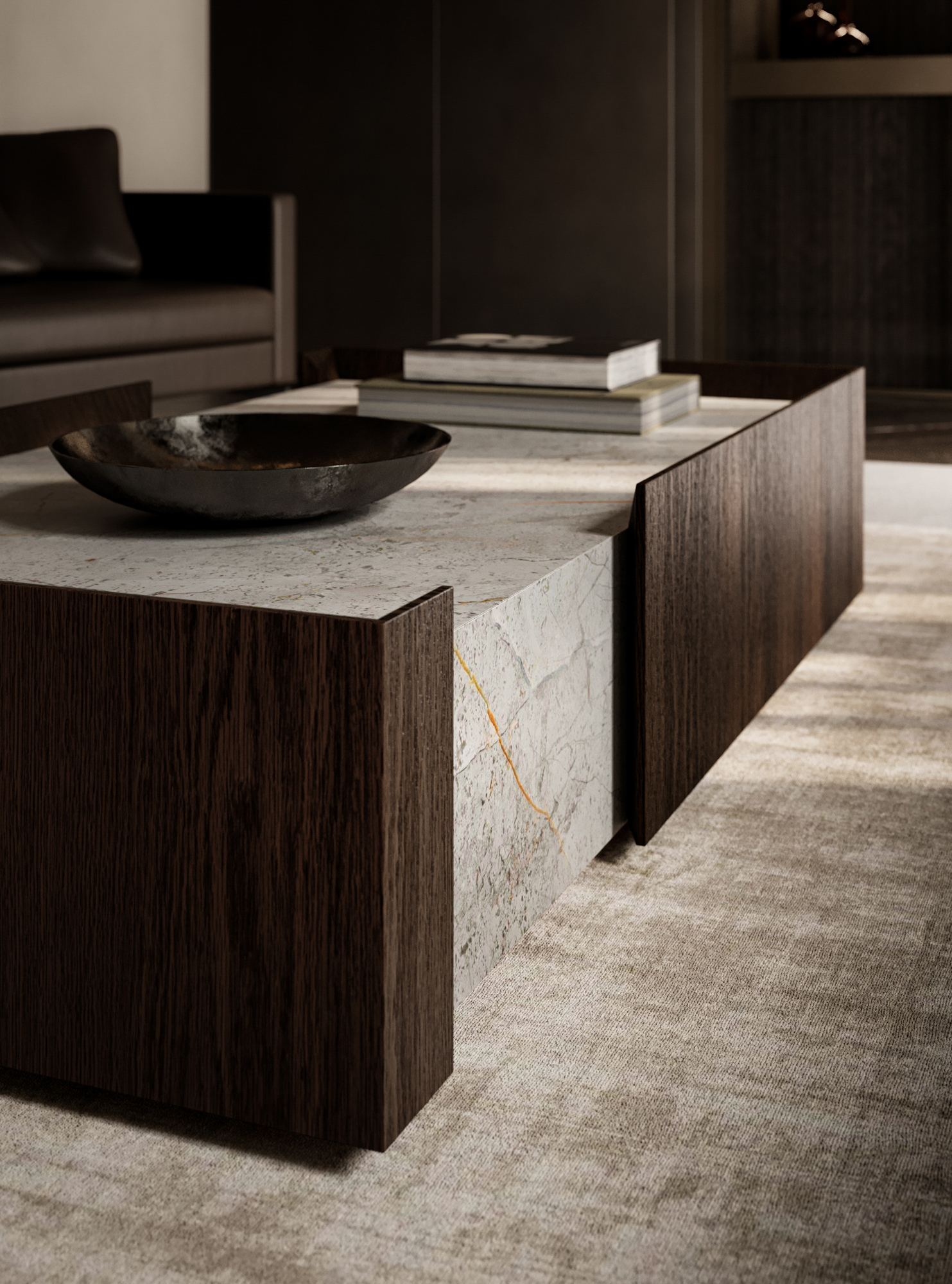 Il pensiero della materia si traduce in un volume monolitico, sintesi scultorea e preziosa di proporzione, dettaglio e identità.