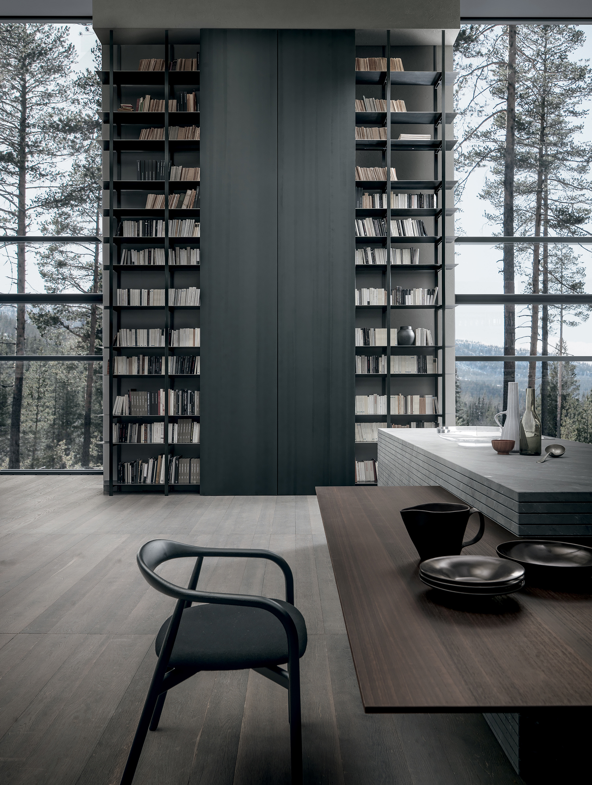 Il progetto Modulnova supera così i limiti tradizionali della configurazione dello spazio attraverso una ricerca che integra materia, architettura e innovazione tecnologica in un unico sistema. I volumi si estendono, il contenimento si amplifica, la superficie oltrepassa la misura consueta. Le ante Blade in metallo generano pareti continue che possono raggiungere i sei metri di altezza. Una struttura in alveolare di alluminio di derivazione aerospaziale, racchiusa in appena 1 cm di spessore, sostiene questa tensione progettuale con rigore, precisione e abilità costruttiva.