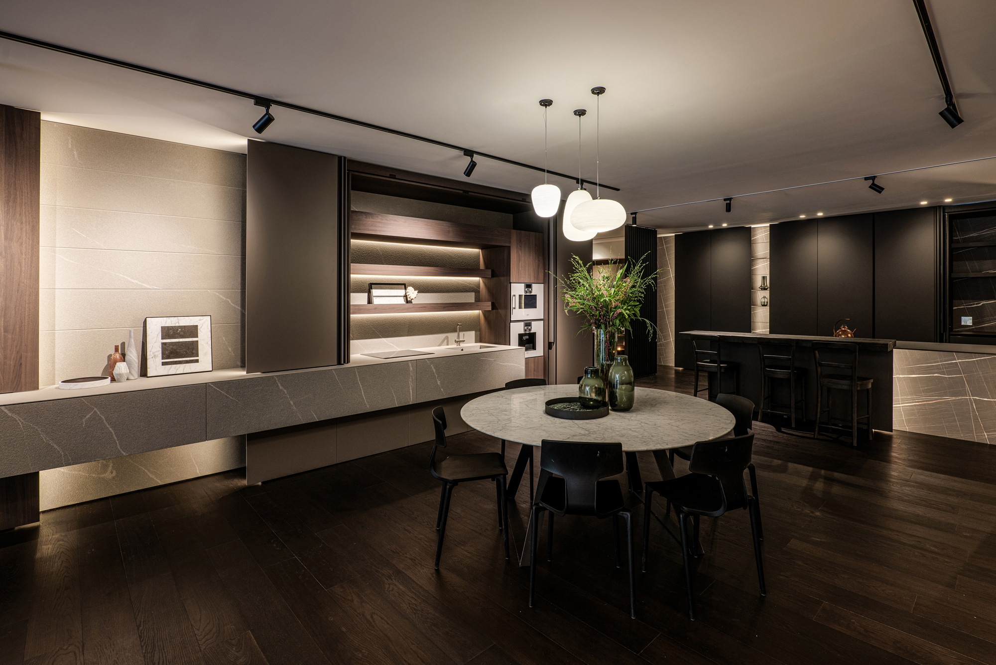 Modulnova Seoul interpreta lo spazio espositivo come un ambiente sofisticato e immersivo, nel cuore di una metropoli dinamica e in continua evoluzione. Volumi, materiali e luce definiscono un percorso fluido, dove cucina, living e bagno dialogano con coerenza. Un luogo che esprime l’identità del brand attraverso equilibrio, rigore e sensibilità contemporanea.